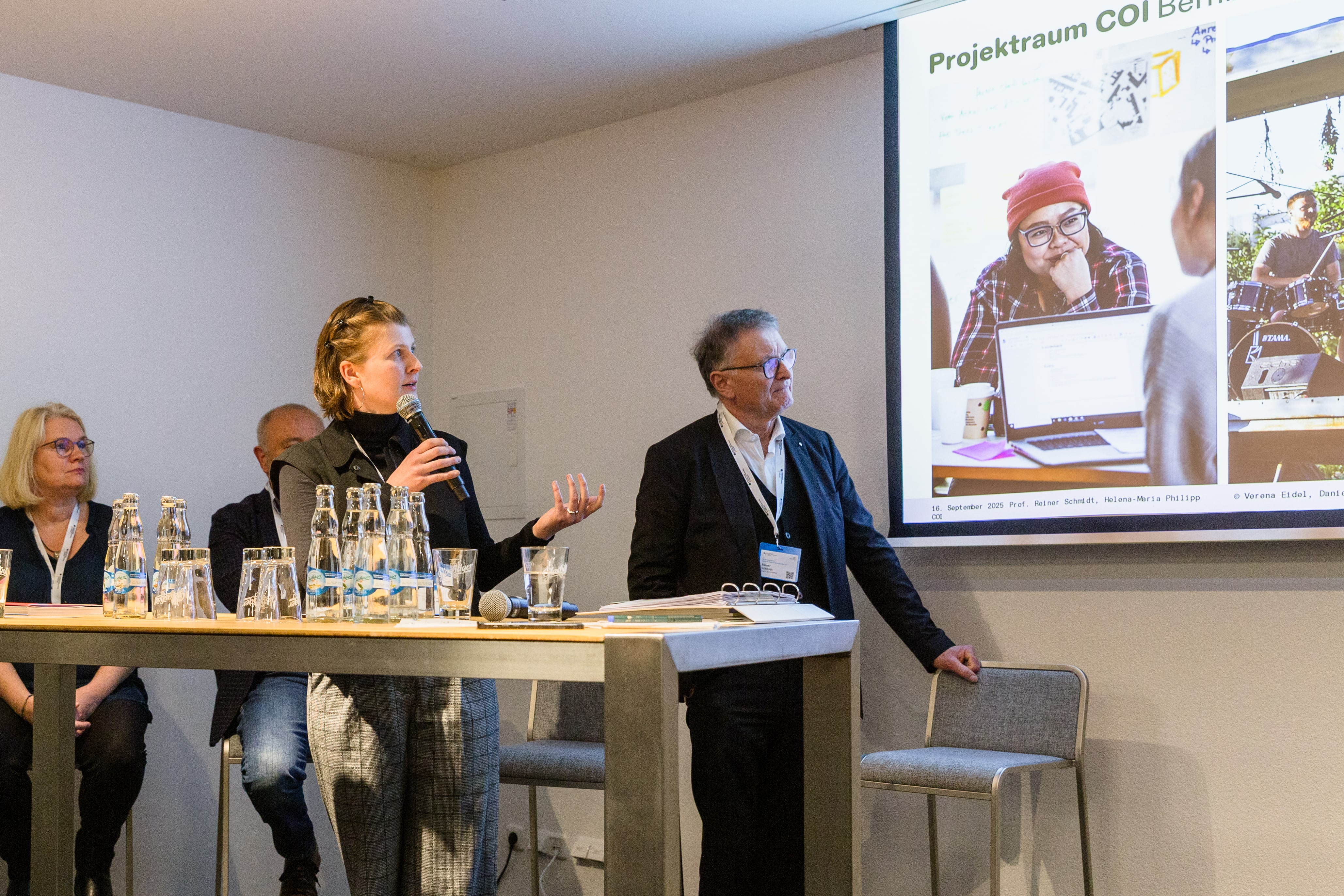 Wie insbesondere die junge Generation und kreative Stadtmacher:innen angesprochen werden können, und aktiv in Stadtentwicklungsprozesse auch im ländlichen Raum einbezogen werden können, zeigten Prof. Reiner Schmidt von „Gemeinsam für das Quartier“ und dem Netzwerk STADT ALS CAMPUS und Helena-Maria Philipp der Initiative Stadt als Campus Sachsen-Anhalt. Sie stellten die Landesinitiative „Stadt als Campus Sachsen-Anhalt“ vor. Trägerin ist die Hochschule Anhalt, gefördert wird das Vorhaben vom Ministerium für Wissenschaft, Energie, Klimaschutz und Umwelt seit 2023 und bis 2027. Ziel ist es, die Idee einer Stadt als offener Lern- und Lebensraum in allen neun Hochschulstädten Sachsen-Anhalts zu verankern. Im Zentrum steht die „Third Mission“ der Hochschulen: Neben Forschung und Lehre sollen sie sich aktiv in die Stadtentwicklung einbringen. Dazu werden neue lokale Projekte initiiert oder bestehende weiterentwickelt. Ein Beispiel für diese lokalen Projekte ist das COI in Bernburg, ein selbstverwalteter Projektraum der Hochschule Anhalt in Bernburg, der als offener Ort für Coworking, Kultur und Begegnung dient. Besonders ist dort die Verbindung von Hochschule, Stadt und Studierenden, durch die ein leerstehender Laden zum kreativen Motor der Innenstadt wurde. Ein Projektteam aus dem Netzwerk STADT ALS CAMPUS begleitet die Hochschulen und Kommunen bei diesen Projekten individuell, unterstützt von Expert:innen mit Erfahrung aus einschlägigen Initiativen. Ziel der Initiative ist es, die Interessen der jungen Generation und Stadtmacher:innen aufzugreifen und über das Studium hinaus Bleibe-, Entfaltungs- und Rückkehrperspektiven zu eröffnen. Stadt als Campus Sachsen-Anhalt will damit nachhaltige Prozesse vor Ort anstoßen und deren Ergebnisse landes- und bundesweit sichtbar machen, auch im Landesmarketing und der Studierendenwerbung.